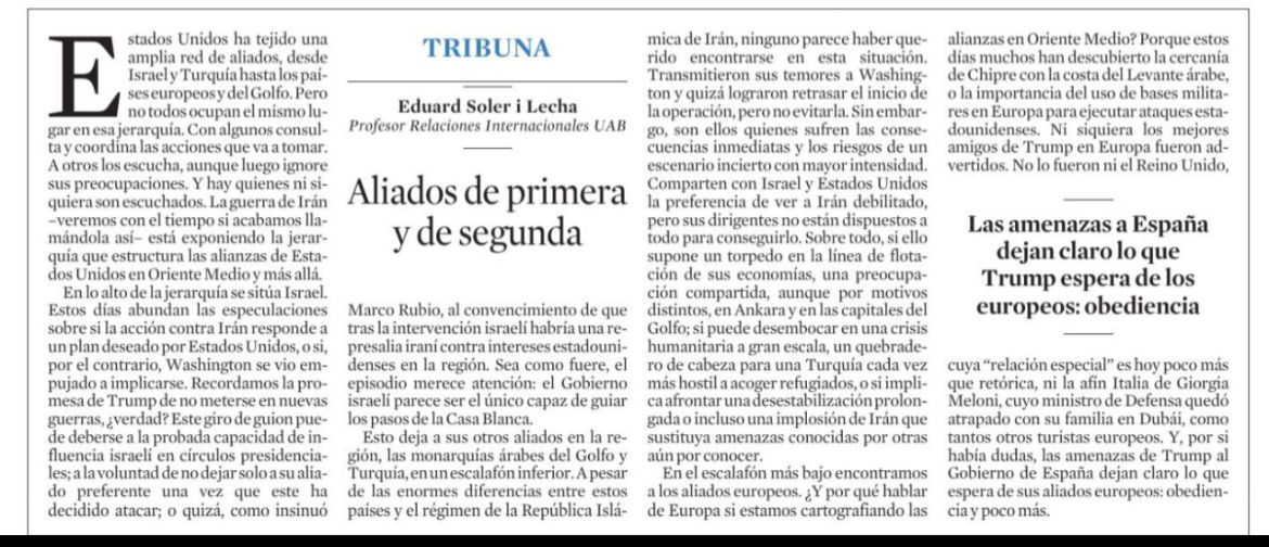 The Observatori’s Middle East expert Eduard Soler has analysed the role of the United States’ allies regarding Iran in La Vanguardia. The article focuses on Israel’s role in the current regional conflict, emphasising how Israel is the sole actor with enough influence in the White House to guide the Trump Administration.